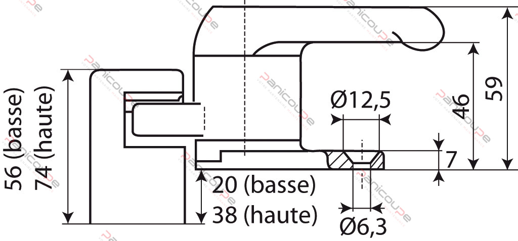 LH or RH version Gradual tightening- Offset 38 mm or 20 mm depending on chosen striker plate- High-gloss chrome finish- Supplied without striker and without coloured knob