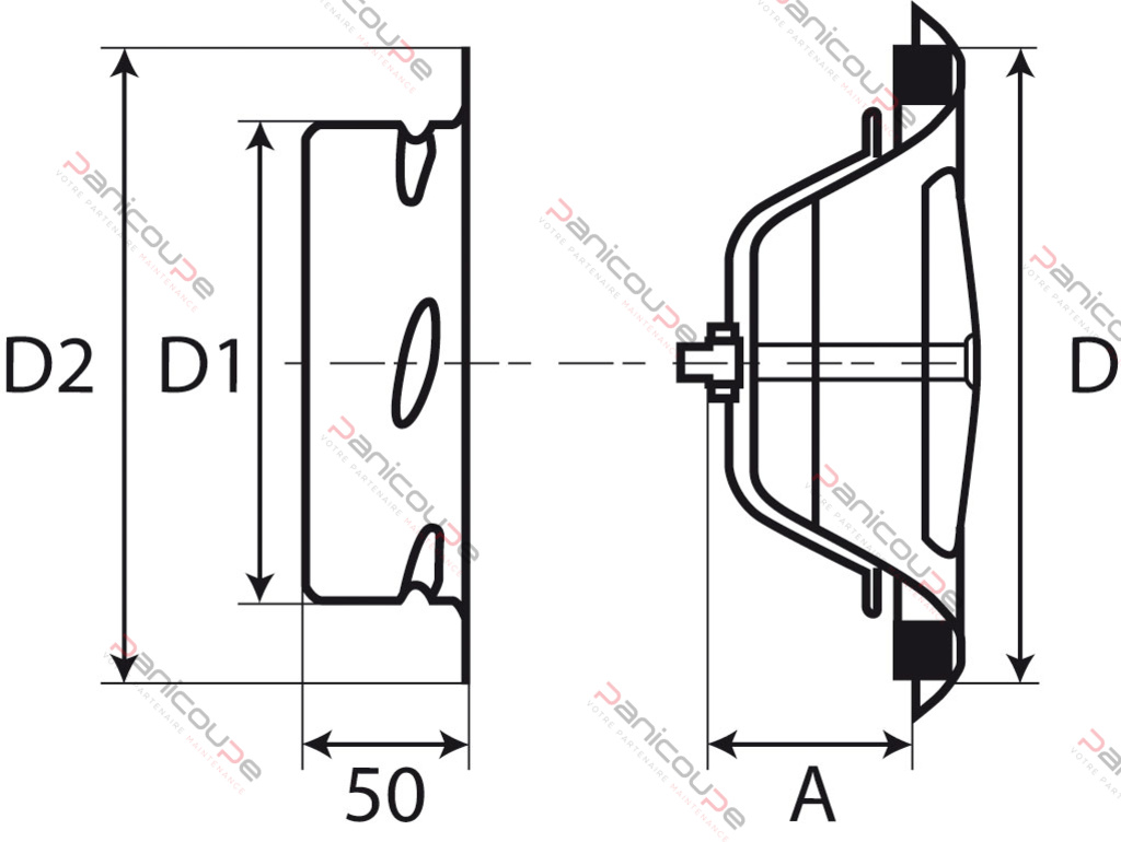 B100LK: Outlet for Ø 100 mm flexible line – D2: 130 – D1: 99 – A: 36 – D: 139