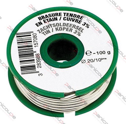 Lead-free tin-based alloy (97%) in solid wire form.
