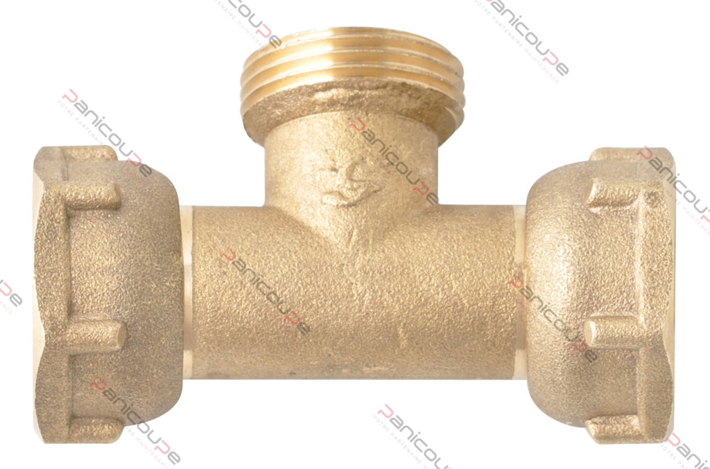 T34FMF2EL F/M/F brass Tee with 2 rotating nuts 3/4 ” Sold in Packets of 5