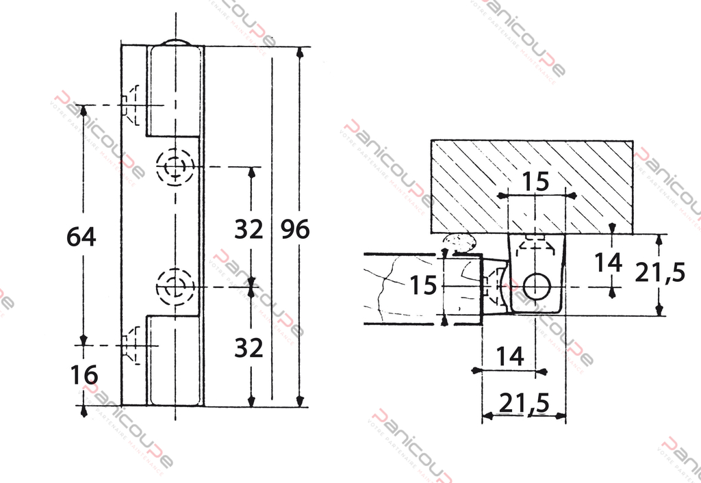 Nylon Ball bearing- From 22 mm door thickness- Interchangeable left or right Height 96 mm
