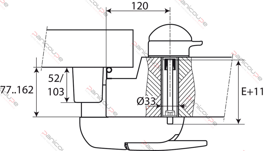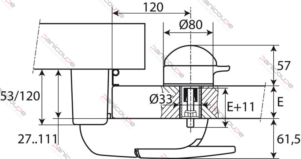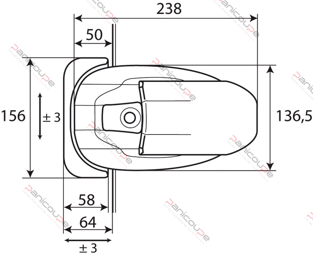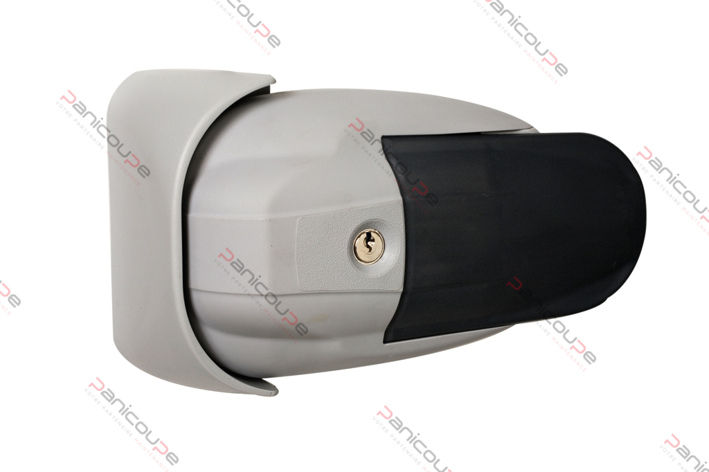 Automatic 1-point closure with internal unlocking by emergency control switch- For flush swing doors- semi-overlapping or overlapping- Offset adjustable from 27 to 162 mm- Concealed and inaccessible attachment and shaft- Interchangeable left or right- Finished in composite material