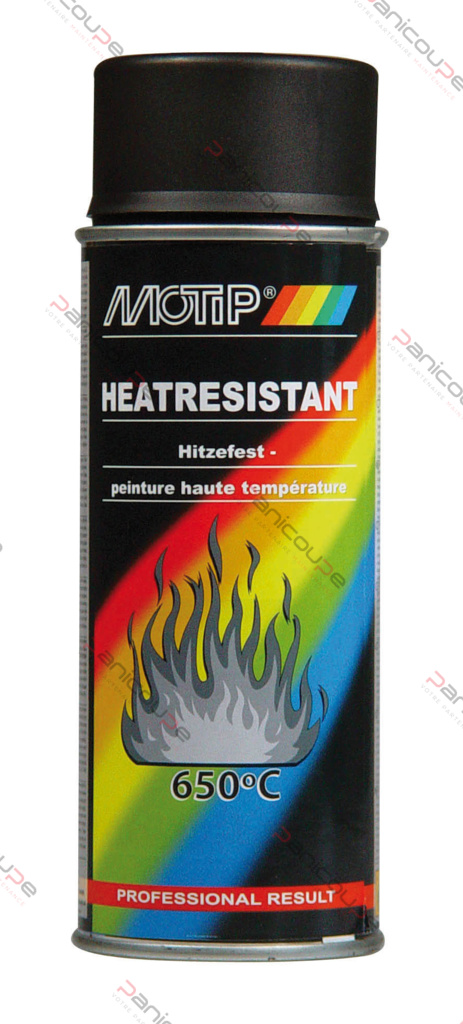 High quality high temperature paint for treated and untreated substrates exposed to very high temperatures up to 650° C- Resistant to petrol- chemicals and weathering- Silicone resin base- Indoor and outdoor use- 400 ml aerosols-
