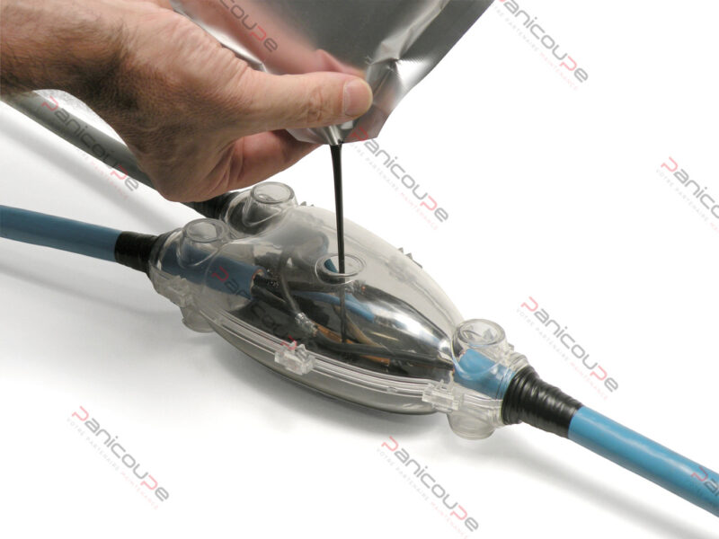 Shells of tansparent synthetic material for visual inspection of connections before and after casting- The two half shells are assembled by a trigger lock to avoid having to use additional attachments or waterproofing- Funnel shaped ends are inserted into the holes in the shell to facilitate filling with resin- The shells are left on the connection after casting to ensure additional protection form shocks and aggression of the weather- Curing time before energising: approx- 1/2 hour Preservation time: 48 months – Max voltage: 1000 V