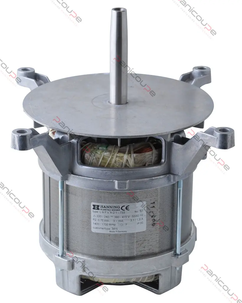Three-phase impellermotor suitable to batinox* tibiletti* ibt* convection ovens Technical data: Three phase 220-240 V/380-415 V – 50/60 Hz power supply- Power 750 W – speed 1400/1700 rpm – reversible rotation – IP00- BALL BEARINGS lubricated with high temperature grease Motor wired with 9 pin connector