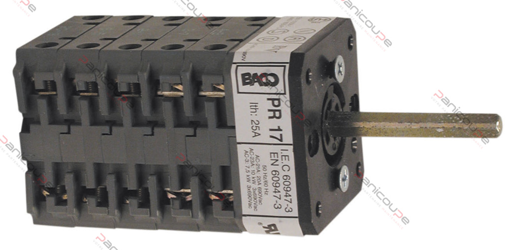 Type PR17 (25A) – Diagram 40792- Connection by screw-on terminal block Case 48 x 50 x 81 mm Square shaft 5 mm Length 45 mm
