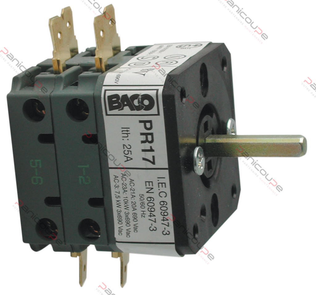 Connection by Faston terminals or screw-on terminal block – Case 48 x 50 x 45 mm Square shaft 5 mm Length 25 mm