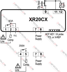 • 1 entrée numérique configurable (contact propre) dégivrage à l’arrêt sonde NTC/PTC à sélectionner (non comprise)