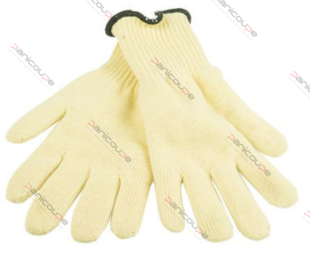 The glove is particularly suitable for all work requiring high protection against heat and cuts- One-piece knitted (seamless)- Fully cotton-COATED Kevlar fibre outer support- Colour yellow- offwhite lining- Ambidextrous- Overall length 34 mm- Cutting index 2541- Heat index 43432X