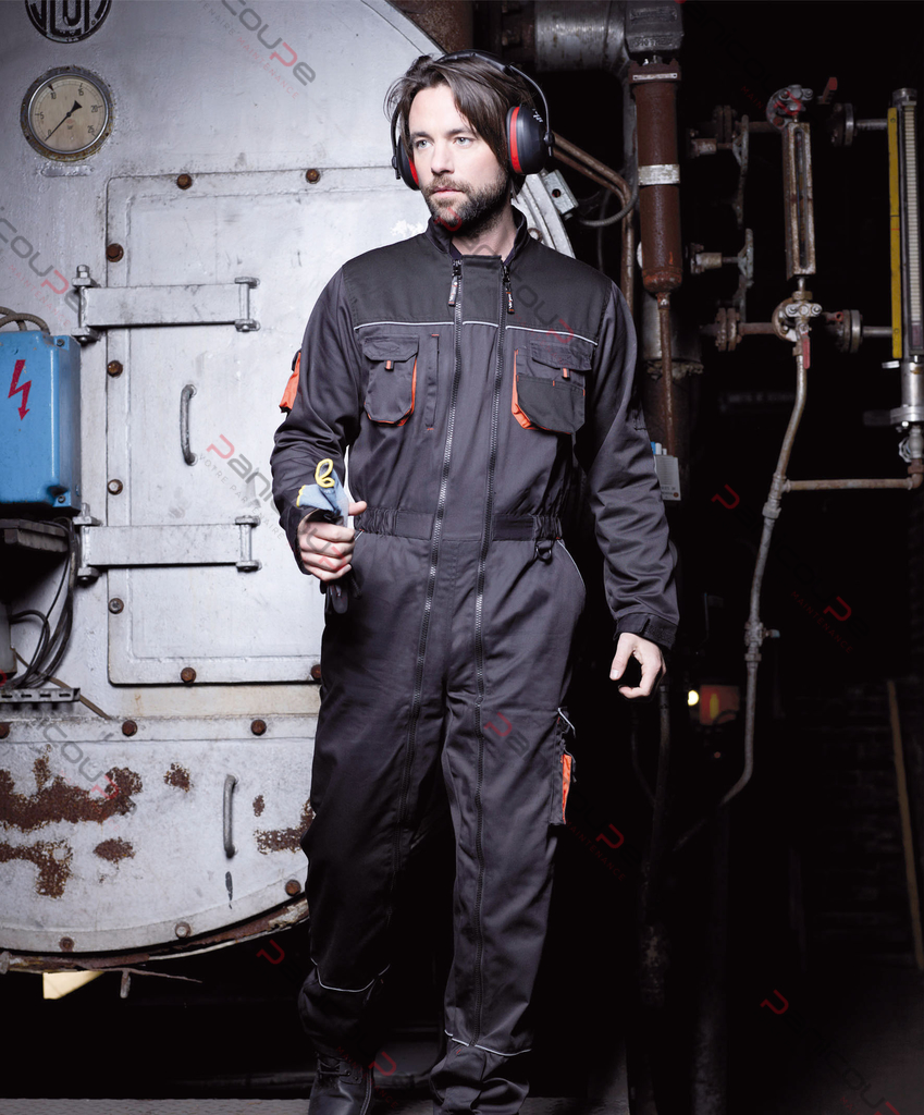 This work garment has been designed to be worn during your various maintenance and cleaning tasks- Elastic waistband- Many pockets including a zipped wallet pocket- Space for pencils- Pockets for screws- Tape measure pocket- Adjustable sleeve and leg bottoms with hook and loop fastening strap- Double zipper without flap- Reflecting piping